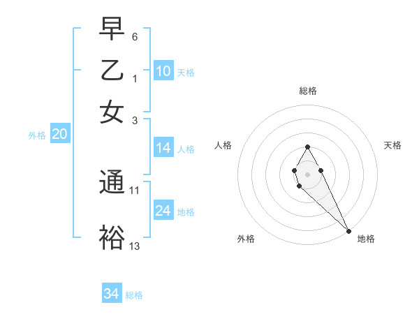 早乙女 通裕さんの総格は34画の2点!