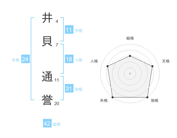 井貝 通誉さんを姓名の画数から五運を鑑定