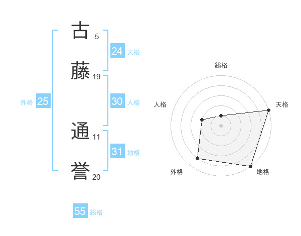 古藤 通誉さんの総格は55画の1点!