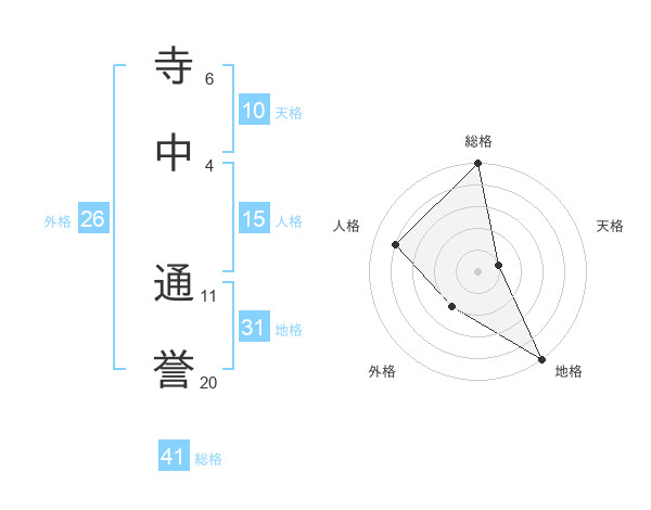 寺中 通誉さんの地格は31画の5点!
