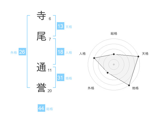 寺尾 通誉さんの外格は26画の2点!