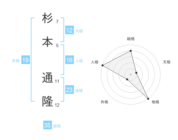 杉本 通隆さんを姓名の画数から五運を鑑定