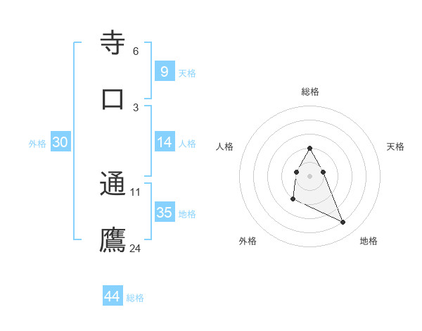寺口 通鷹さんの総格は44画の2点!