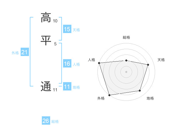 高平 通さんの外格は21画の5点!