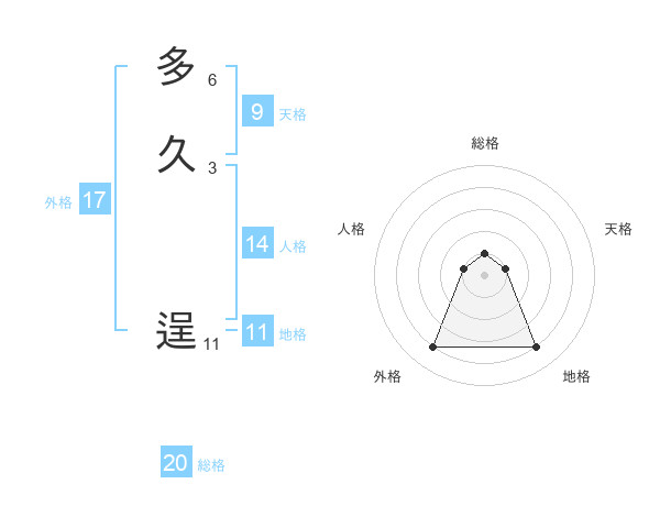 多久 逞さんの総格は20画の1点!