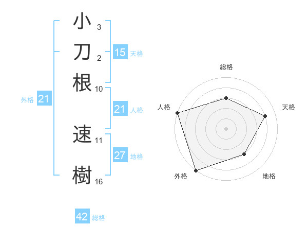 小刀根 速樹さんを姓名の画数から五運を鑑定