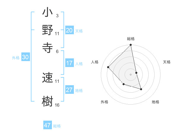 小野寺 速樹さんを姓名の画数から五運を鑑定