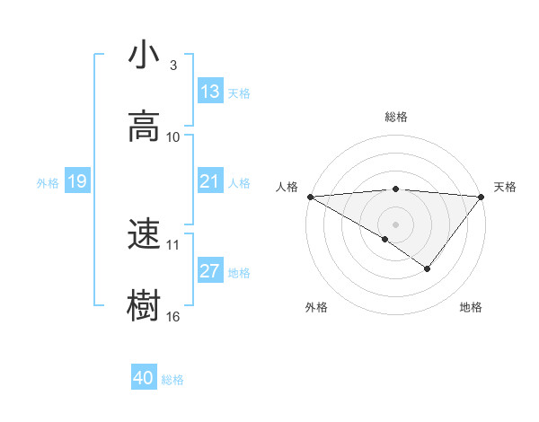 小高 速樹さんの天格は13画の5点!