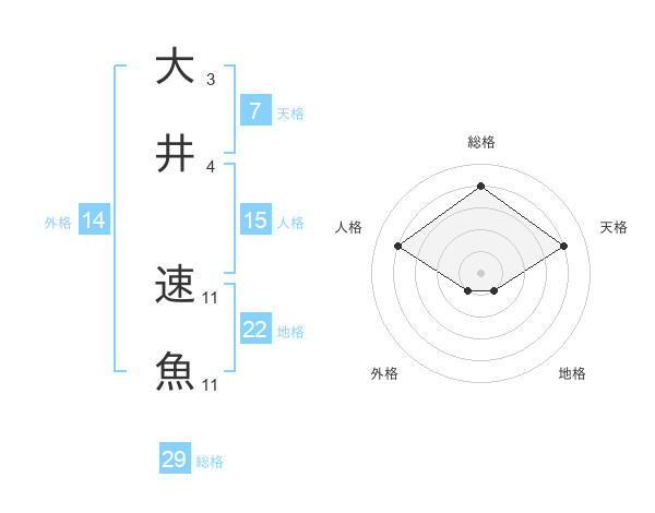 大井 速魚さんの総格は29画の4点!