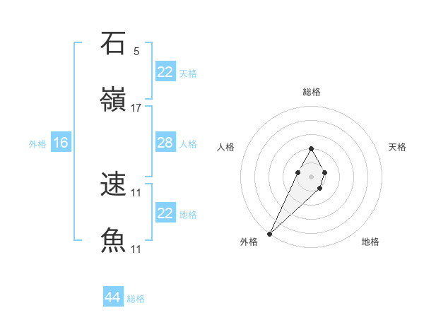 石嶺 速魚さんを姓名の画数から五運を鑑定