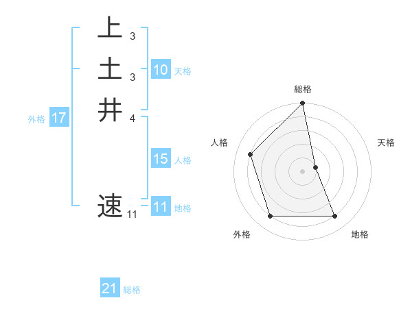 上土井 速さんの総格は21画の5点!