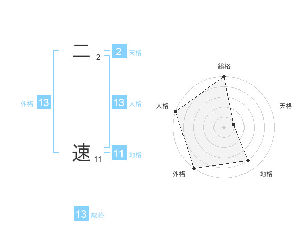 二 速さんの総格は13画の5点