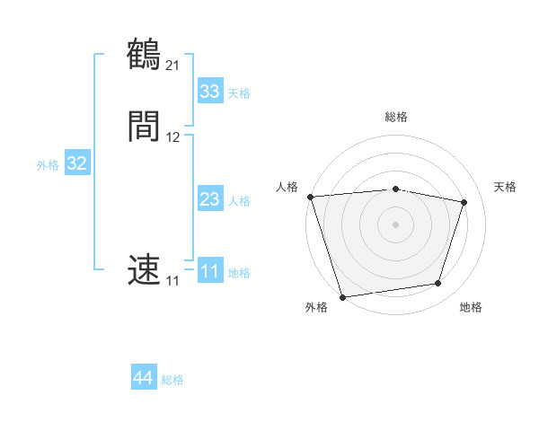 鶴間 速さんの総格は44画の2点!