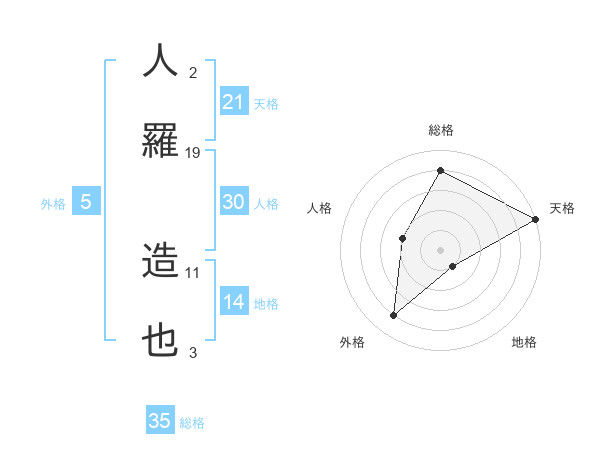 人羅 造也さんの総格は35画の4点!