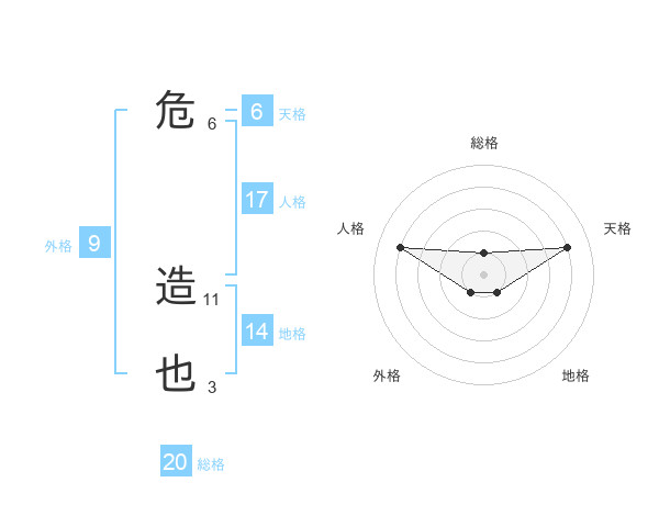 危 造也さんの総格は20画の1点!