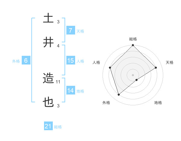 土井 造也さんの総格は21画の5点!