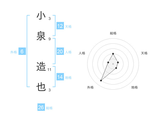 小泉 造也さんの総格は26画の2点!