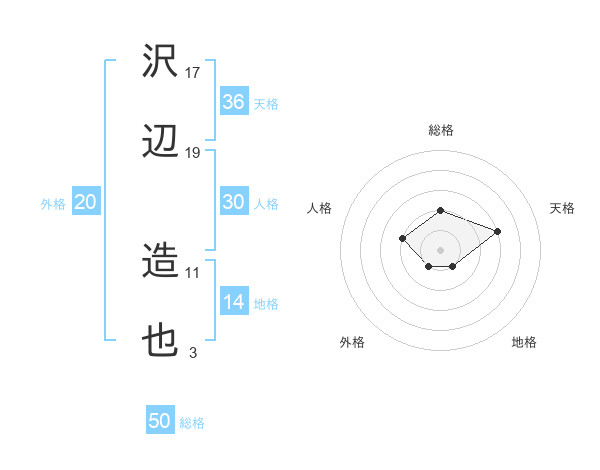 沢辺 造也さんを姓名の画数から五運を鑑定