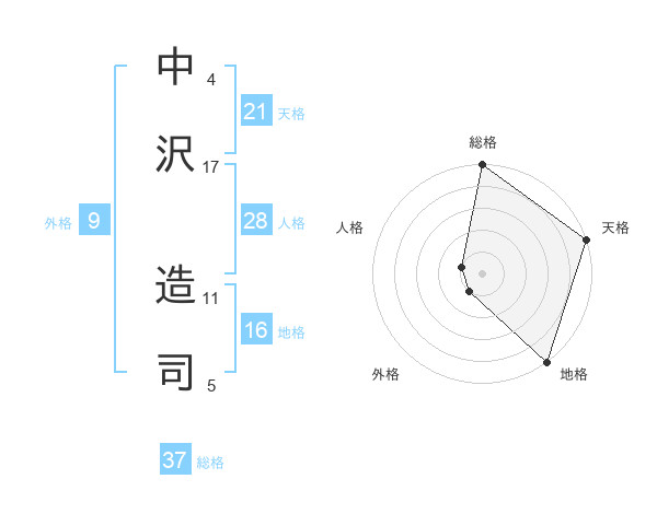 中沢 造司さんの総格は37画の5点!