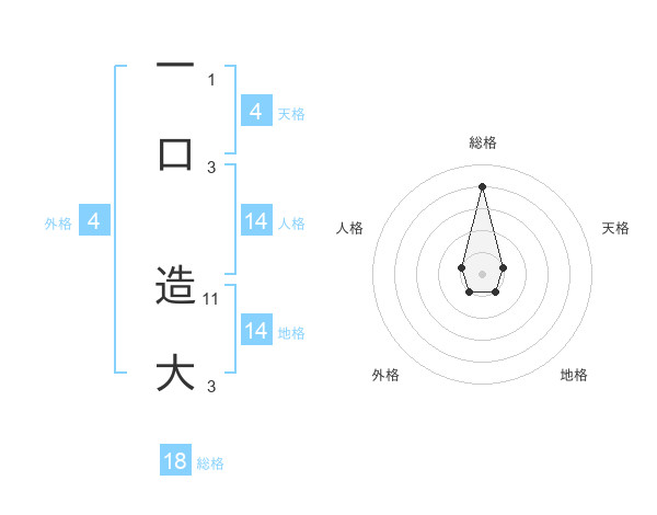 一口 造大さんの総格は18画の4点!