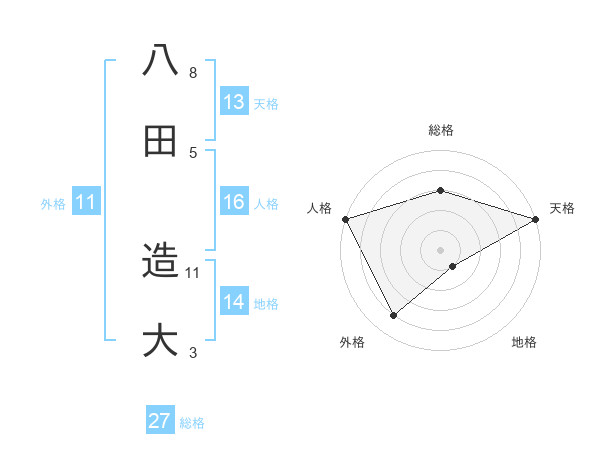 八田 造大さんを姓名の画数から五運を鑑定