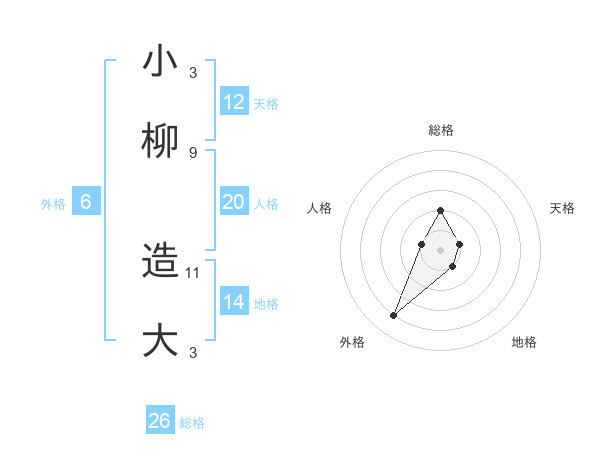 小柳 造大さんの総格は26画の2点!