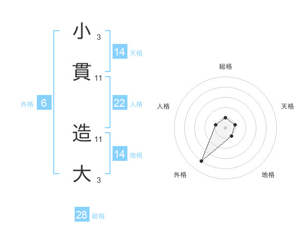 小貫 造大さんの人格は22画の1点!