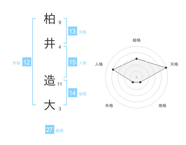 柏井 造大さんの天格は13画の5点!