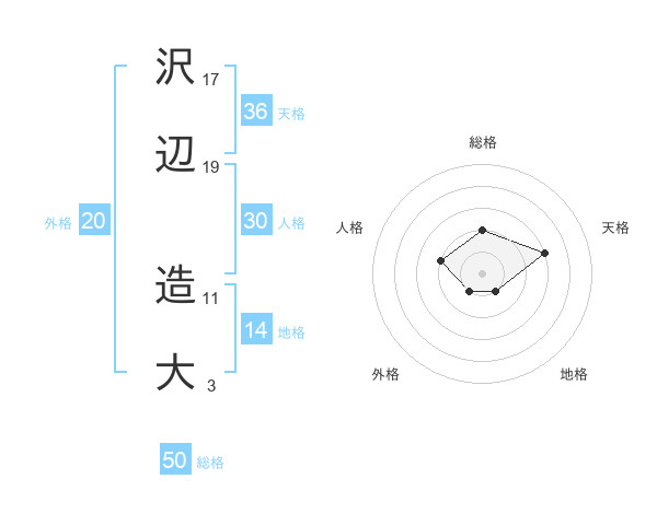 沢辺 造大さんの総格は50画の2点!