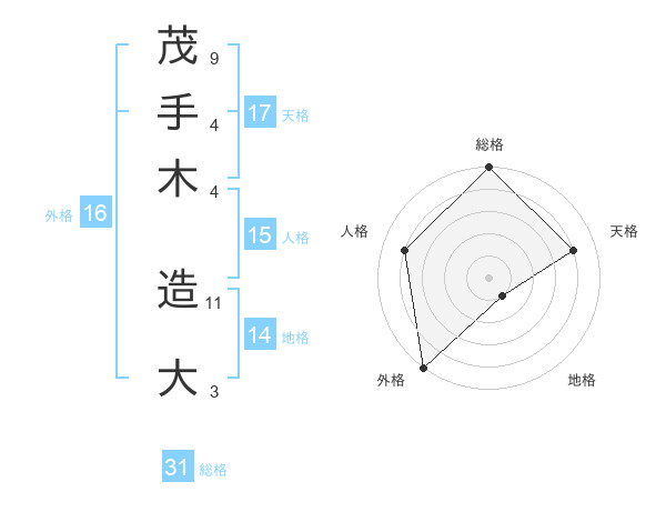 茂手木 造大さんの総格は31画の5点!