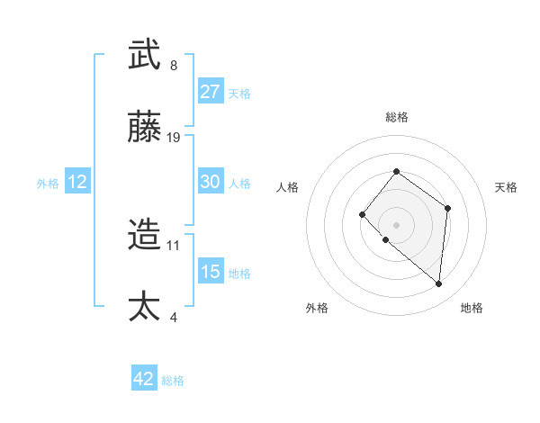 武藤 造太さんを姓名の画数から五運を鑑定