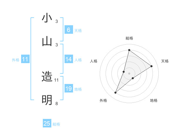 小山 造明さんの総格は25画の4点!