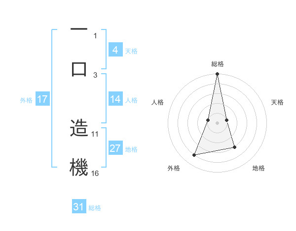 一口 造機さんの総格は31画の5点!