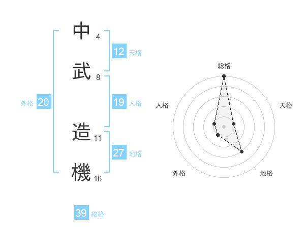 中武 造機さんの総格は39画の5点!