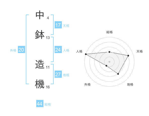 中鉢 造機さんの総格は44画の2点!