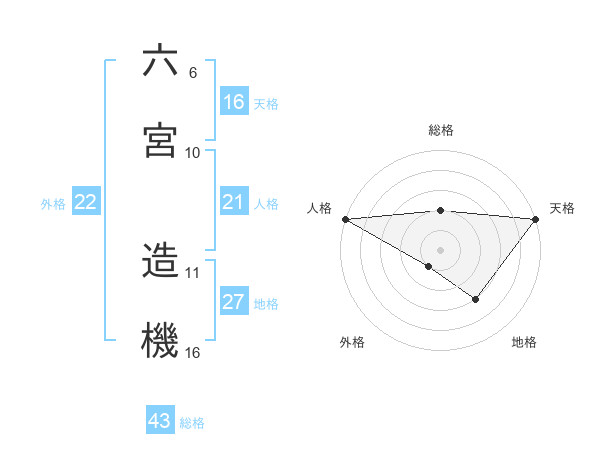 六宮 造機さんの総格は43画の2点!