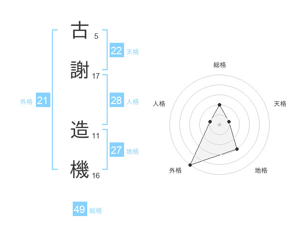 古謝 造機さんの総格は49画の2点!