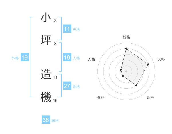 小坪 造機さんの総格は38画の4点!