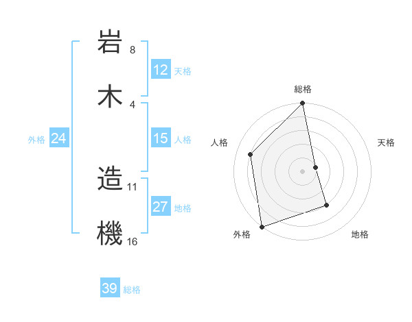 岩木 造機さんの総格は39画の5点!