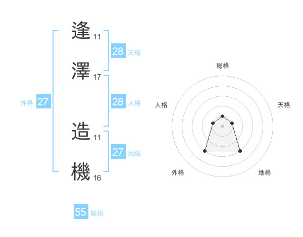 逢澤 造機さんを姓名の画数から五運を鑑定