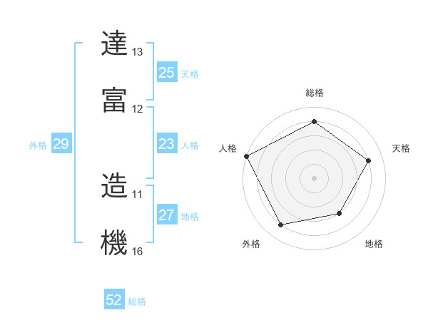 達富 造機さんの総格は52画の4点!