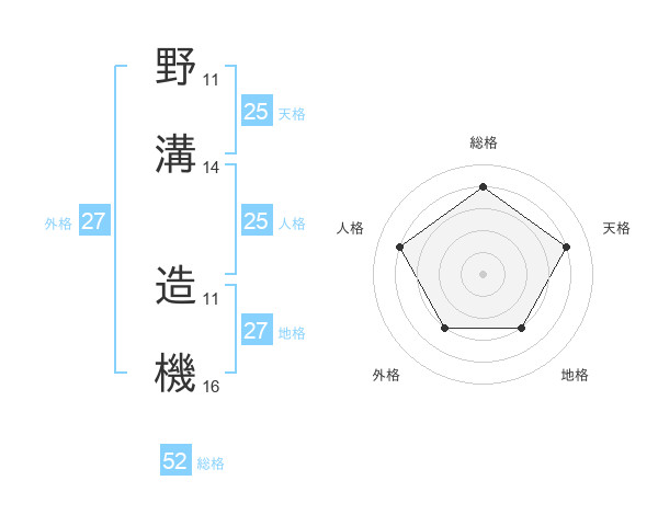野溝 造機さんの総格は52画の4点!