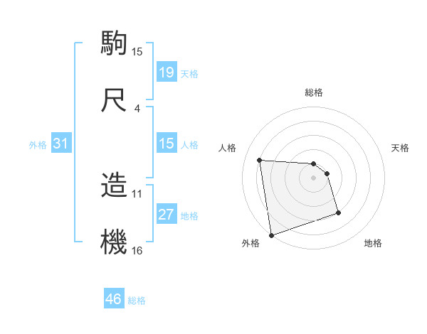 駒尺 造機さんの外格は31画の5点!