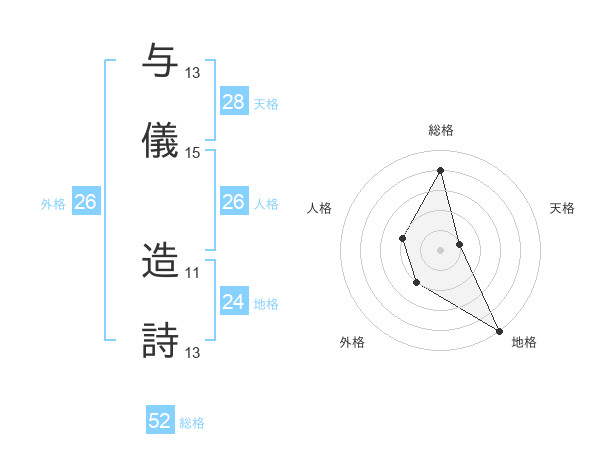 与儀 造詩さんを姓名の画数から五運を鑑定