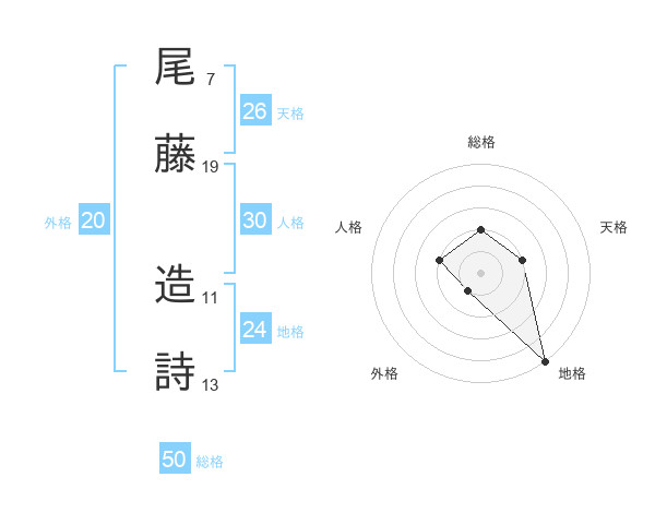 尾藤 造詩さんを姓名の画数から五運を鑑定