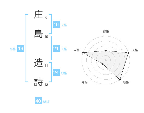 庄島 造詩さんを姓名の画数から五運を鑑定
