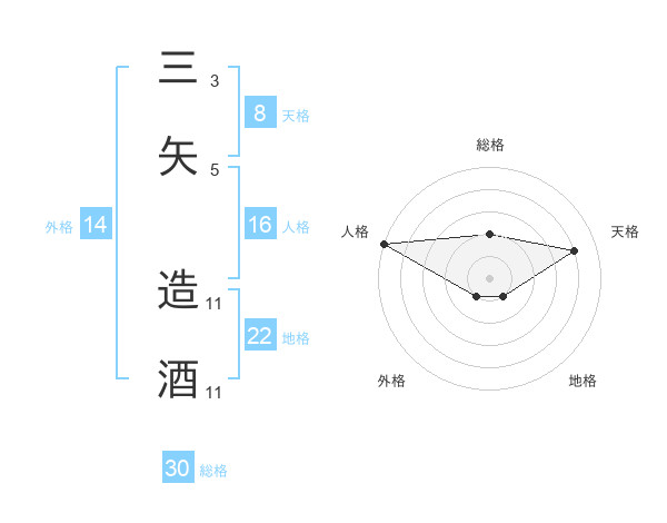 三矢 造酒さんを姓名の画数から五運を鑑定