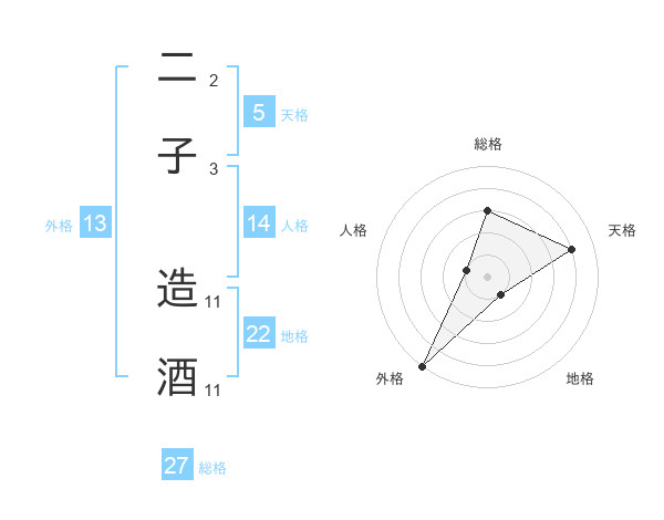 二子 造酒さんの外格は13画の5点!