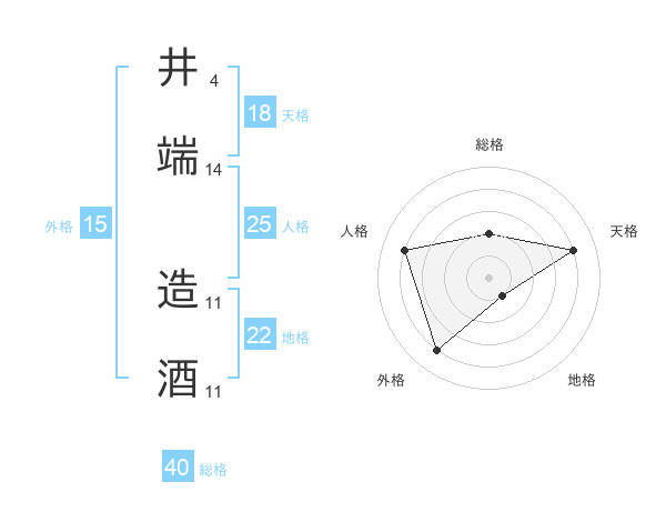 井端 造酒さんの総格は40画の2点!