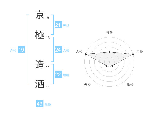 京極 造酒さんの総格は43画の2点!